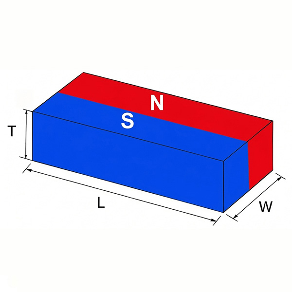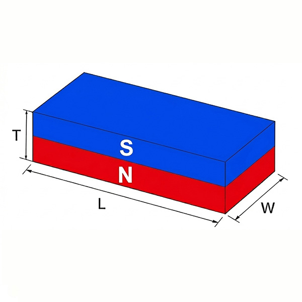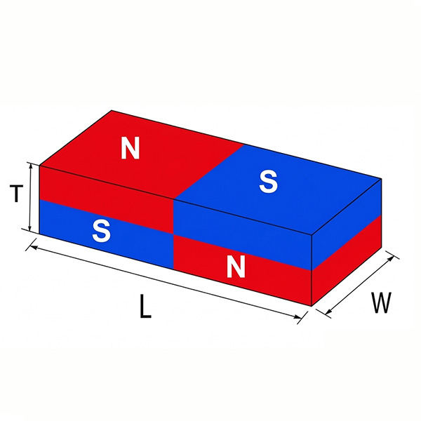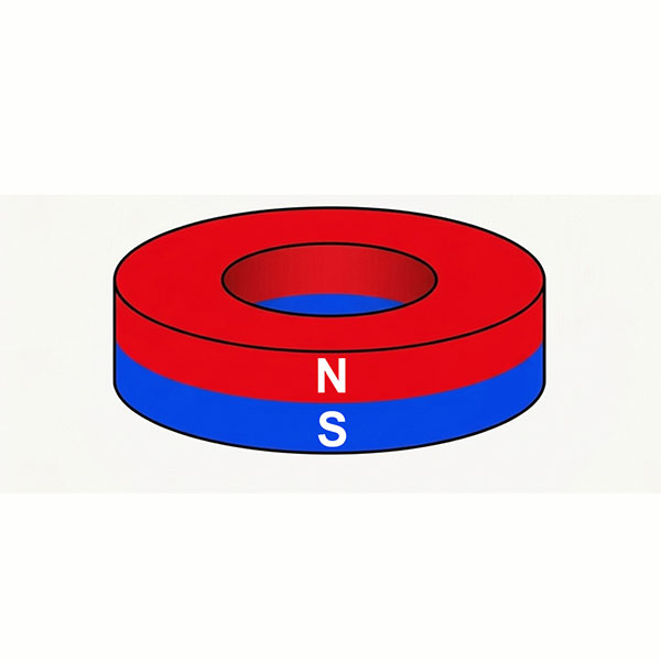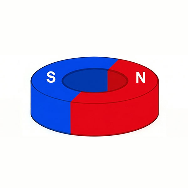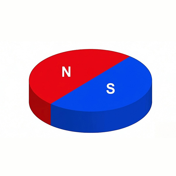 Axial magnetization (also called “through-thickness” magnetization) is the most basic and common magnetization direction. The magnetic field runs in a straight line from one flat face of the magnet to the opposite face. After magnetization, one flat face becomes the North pole and the opposite face becomes the South pole.